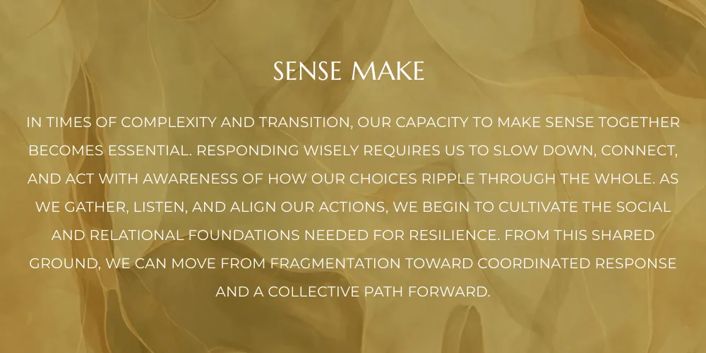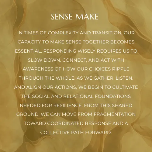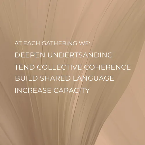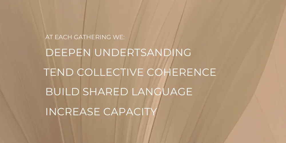 We gather in clusters of 3 sessions per season resourcing the center to grow our coherence on what we are each holding within the regenerative movement.